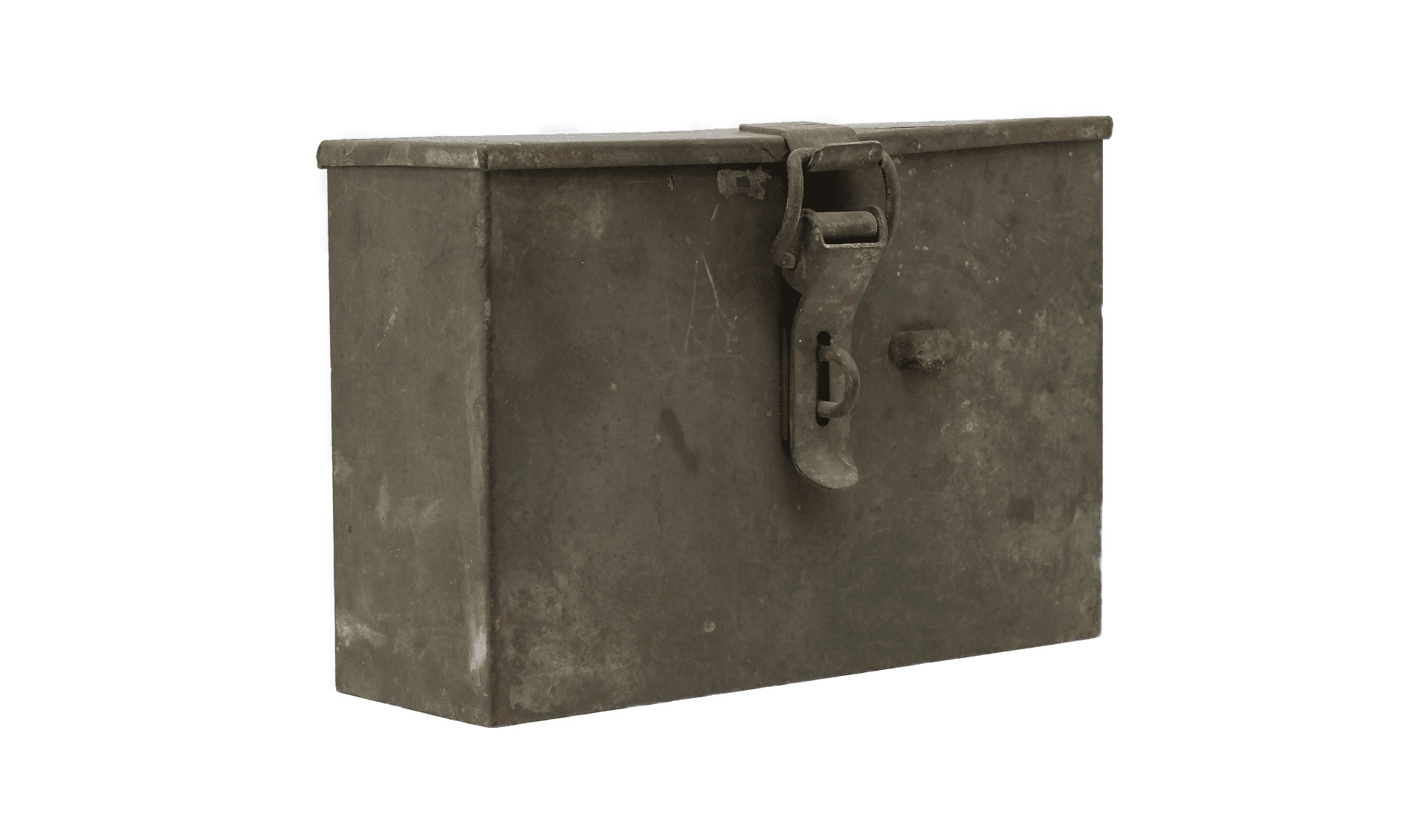 Sheet metal ammunition box attached to the left fork of Harley Davidson WLA motorcycles.