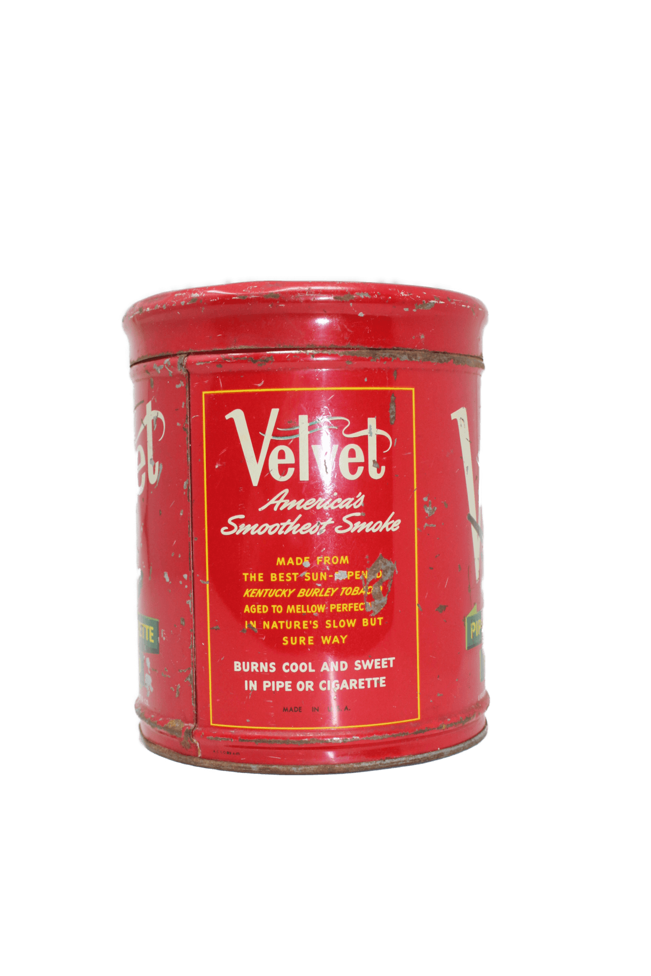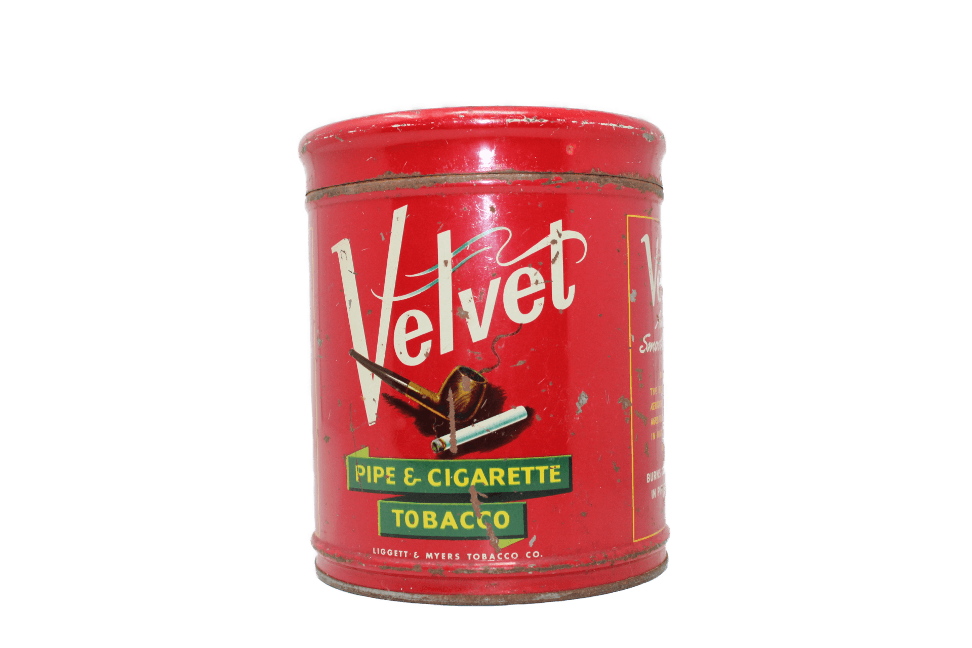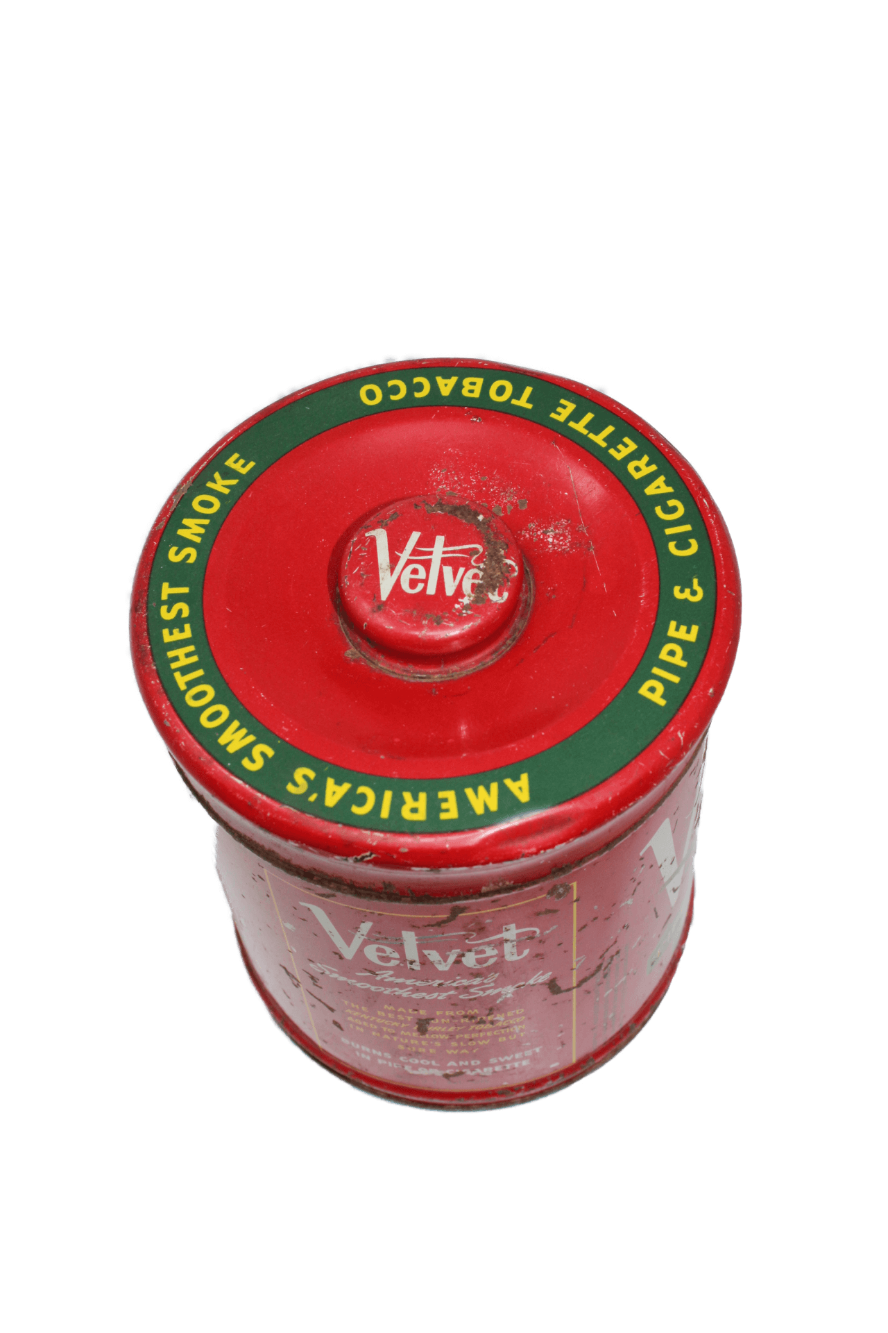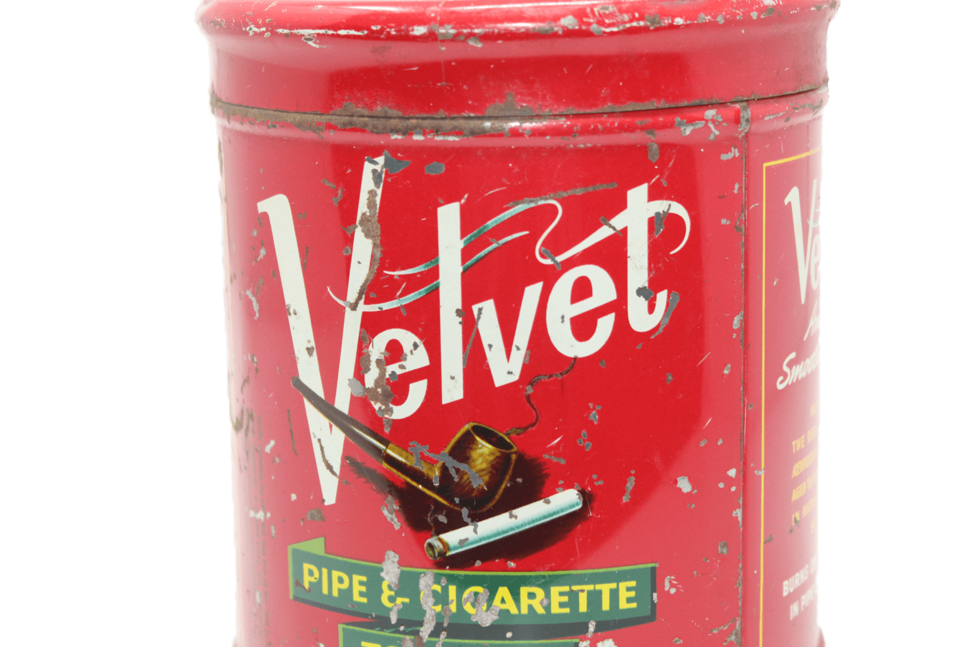 Boite de tabac vide en métal de la marque Velvet pour cigarettes et pipes.