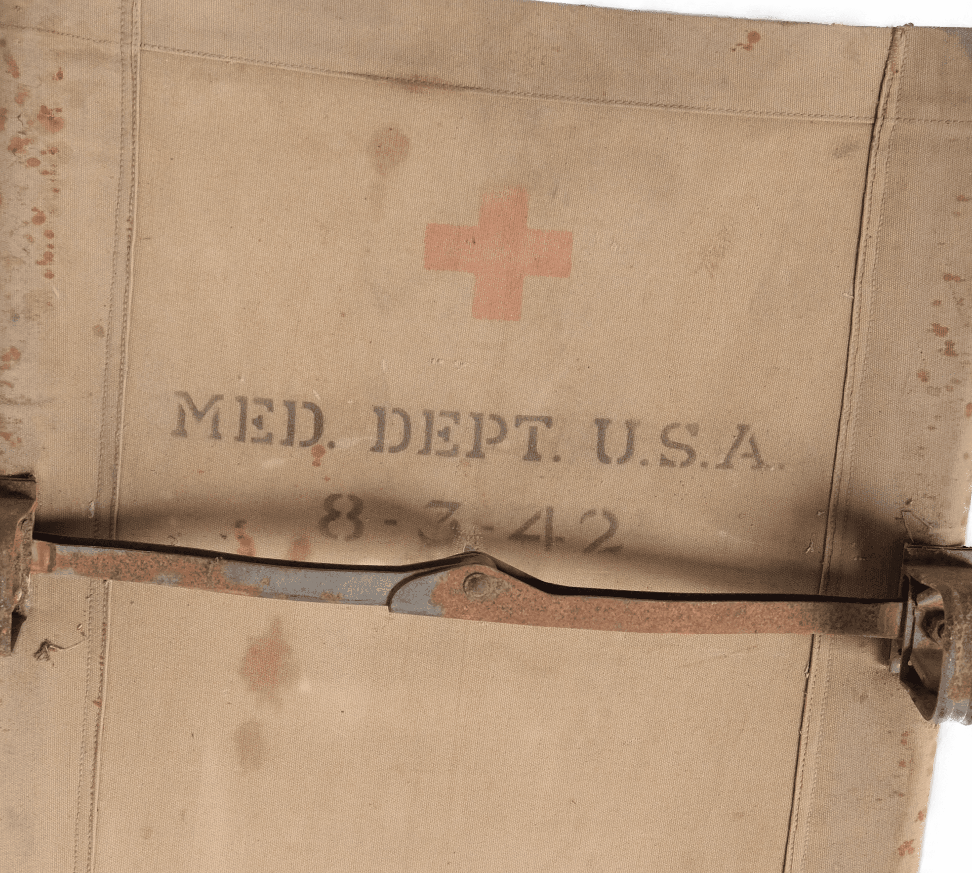Brancard Us Army  avec marquage « Medical Dpt USA » et datée du 8 Mars 1942.