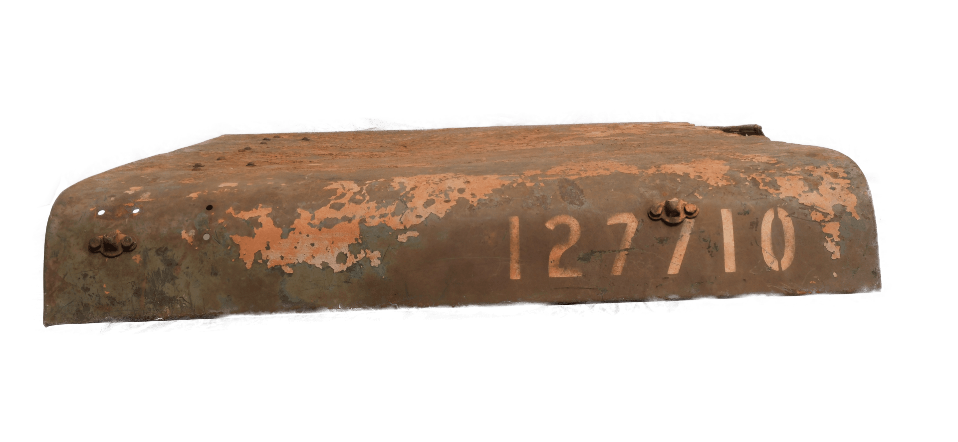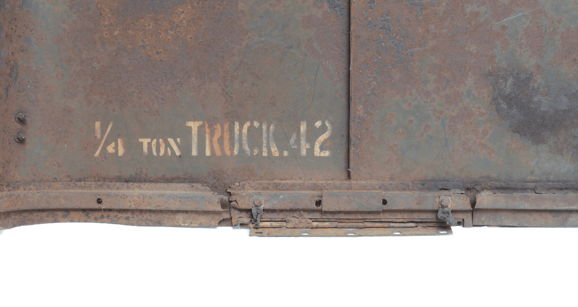 Numéros d’origines peints en blanc « 127710 » et identification dy type de d’automobile militaire et contrat « 1/4 ton truck – 1942 ».